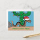 Este cartão adorável do Natal é certo trazer um sorriso a tudo que o recebe. Características de design um cascavel ilustrado em máscaras do marrom com os carvões ao longo de seu para trás. Este cascavel pequeno bonito do Natal está vestindo um chapéu vermelho de Papai Noel e é na frente de seu árvore decorada do cacto de Natal. Este cacto de Natal é decorado toda para a época natalícia com uma corda de luzes coloridas brilhantes da árvore de Natal. O cartão diz da "o Silvo-Mas feliz!" Este caráter ocidental sul adorável do Natal é certo satisfazer tudo que o vê.