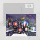 Um cartão de Natal único e diferente com bolas brilhantes sob um céu estrelado e nevado. O texto "Feliz Natal" é criado numa das bolas. Este produto pode ser personalizado alterando a cor de fundo