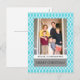Cartão postal de Feriado Elegante de Latice na moda e moderno, com um delicado padrão de gola branca e um fundo turquesa. Este cartão com fotos simples e de tendência pode ser facilmente personalizado com uma fotografia e uma saudação de Natal personalizada. Localize mais opções de personalização clicando em Personalizar. Fotografia © Storytree Studios, Stanford, CA