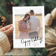 Feriados felizes modernos Cartão de Feriado de Script Simples com cartaz desenhado à mão moderno com foto na frente. Clique no botão personalizar/editar para personalizar este design com suas fotos e detalhes.
