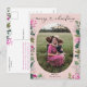 Este cartão-postal de Natal moderno mostra sua foto favorita com elegantes botânicos de inverno em rosa e um roteiro cardíaco de caligrafia. Para fazer alterações avançadas, selecione Personalizar -> Editar usando a ferramenta Design. A cor da frente da placa pode ser modificada alterando a cor do plano de fundo e o elemento oval.