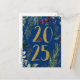 Envie aos seus entes queridos e conhecidos os melhores votos para o Ano Novo de 2025 com este bonito cartão azul de 2025. Este cartão temático rústico apresenta um fundo azul quente e sofisticado com bonito verde botânico, pinheiros e morangos vermelhos. Um cardeal vermelho charmoso se senta em um dos números de ouro. Personalize a parte de trás com seu nome e endereço.