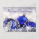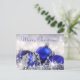 Cartaz prateado de Natal e Ano Novo com bolhas de Natal azuis, luzes cintilantes, enroladores e espaço para o seu texto.