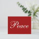 Este cartão postal de feriado apresenta um design de texto alegre: Paz. Personalize a parte de trás com sua própria mensagem pessoal. Perfeito para enviar mensagens de feriados.