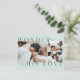 Um cartão postal de Natal com três fotos apresenta tipografia minimalista e saudações religiosas.