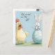 Cartão Postal De Festividades Cartoon Bunny Pintinho, Diversão de Páscoa de Ovo
