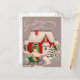 Casa de Natal Antiga na Neve Saudações Cartão de Natal. Este design apresenta uma cena antiga com uma casa de natal decorada na neve com a palavra saudações. Que bela cena de férias retrô.