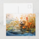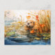 Cartão Postal De Festividades Castor sentado junto a lagoa entre caniços