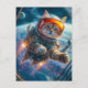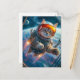Cartão Postal De Festividades Cat astronaut floating in deep space scene
