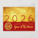 Cartão Postal De Festividades Cavalo de Ano Novo Chinês 2026 Dourado Vermelho pe