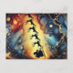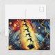 Cartão Postal De Festividades Cena de Papai Noel no céu noturno c/ renas Cartão