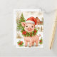 Cartão Postal De Festividades Christmas Piglet Watercolor Postcard