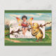 Um belo cartão postal de vintage com uma linda música de fazer de fada com uma galinha, pintada pela ilustradora americana Ellen Hattie Clapsaddle.