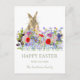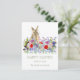 Cartão de saudação de orçamento para coelho e felz pascoa de Páscoa com cor de água adorável, com tipografia verde de sábio. Bonitos primavera de boho, incluindo flores de cornalha, papoilas e flores de prado de jardim. Pintura moderna à mão em tons azuis, vermelhos, cor-de-rosa, roxos, verdes e lavandas. Fácil de personalizar o moderno script de tipografia de escrita manual para que você possa adicionar seu nome de família e saudações. Arte original da artista Catherine Sweetman