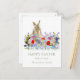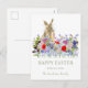 Cartão Postal De Festividades Coelhinho-Cinto-felz pascoa e flores selvagens