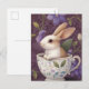 Cartão Postal De Festividades Coelhinho no Teacup Floral com Flores Roxas