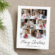 Cartaz de feriado moderno com 6 fotos organizadas em uma colagem. "Feliz Natal" é exibido em um roteiro escrito à mão com seu nome de família e o ano mostrado abaixo. O cartão postal de feriado multifoto é revertido para exibir seu endereço de devolução e mensagem personalizada em letras negras.
