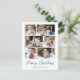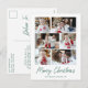 Cartaz de feriado moderno com 6 fotos organizadas em um layout de colagem. "Feliz Natal" é exibido em um roteiro verde manuscrito com seu nome de família e o ano mostrado abaixo. O cartão postal de feriado multifoto é revertido para exibir seu endereço de devolução e mensagem personalizada em caracteres verdes.