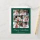 Cartaz de feriado moderno com 6 fotos organizadas em uma colagem. O "Feliz Natal" é apresentado num guião branco manuscrito com o nome da sua família e o ano apresentado em seguida num fundo verde. O cartão postal de feriado multifoto é revertido para exibir seu endereço de devolução e mensagem personalizada em caracteres verdes.