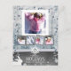 Happy Holidays Winter Maravilderland Christmas 5 Photo Collage Postcards. Com fontes modernas divertidas, Snowflake confetti, um fundo de madeira pintado, com base de quadro-negro e coelho branco em bonito tons de blues, prata e cinzas escuras! Substitua suas fotos e envie uma saudação especial personalizada de natal para a família e os amigos!