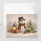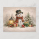 Cartão Postal De Festividades Cozy Christmas Snowman with Lantern and Gifts
