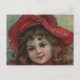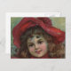 Cartão Postal De Festividades Criança Vitoriana Red Hat Girl Retrai Ar