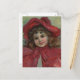 Cartão Postal De Festividades Criança Vitoriana Red Hat Girl Retrai Ar