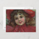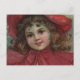 Cartão Postal De Festividades Criança Vitoriana Red Hat Girl Retrai Ar