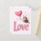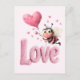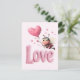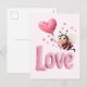 Cartão Postal De Festividades Cute Bee Fluffy Pink Love Heart Balloon Design
