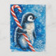 Cartão Postal De Festividades Cute Penguin with Candy Cane Christmas Postcard