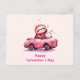 Cartão Postal De Festividades Cute Sloth in a Pink Convertible Valentine's Day