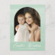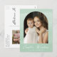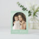 Cartão postal Elegante de Páscoa com a sua dentro fotográfica de um quadro de arco com uma cor verde-menta. A frase "Desejos da Páscoa" é exibida abaixo em um script de caligrafia branca. Personalize a parte frontal do cartão-postal de foto-Páscoa cor-de-rosa adicionando seu(s) nome(s). O cartão postal reverte para exibir seu endereço de devolução, foto adicional e mensagem personalizada.