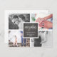 Cartão combinado para agradecimento de casamento e Natal, com espaço para quatro fotos. No meio, um rótulo impresso para parecer madeira, decorado com "Desejos quentes e beijos de férias," em branco com ramos de visgo.