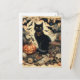 Entre em um mundo de elegância felina antiga com este cartão postal de Halloween. Com efêmeras ilustrações de gatos pretos em aquarela inspiradas na arte vitoriana e na nostalgia da temporada assustadora, este cartão de feriado tem um gato preto de Halloween vintage com detalhes de arte gótica para um visual e sensação antigos. Pode ser personalizado com uma saudação no verso.