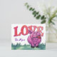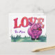 Parada Animal O Romântico Coração de Porcos e Dons de Amor, cartas, e acessórios trazidos a você pela ITD Animal Parade apresentam nossa divertida trabalho de arte de um porco rosa segurando um rosa bonito na boca com corações roxos, vermelhos e cor-de-rosa atrás pintados digitalmente pelo artista infantil, Traci Van Wagoner. Este doce porco apaixonado é um presente perfeito para o Dia de os namorados, o seu aniversário, para propor casamento de uma forma divertida e original, ou apenas para dizer, eu te amo. Oink!