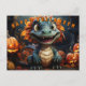 Cartão Postal De Festividades Dinossauro De Halloween Na Floresta Com Pumpkins