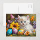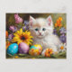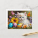 Cartão Postal De Festividades Easter Kitten with Flowers and Painted Eggs