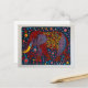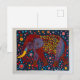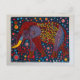 Cartão Postal De Festividades Elefante Abstrato Vermelho Azul com Flores Pontilh