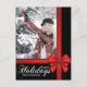 Que cartão postal de Natal elegante com a foto da sua família. Grande laço vermelho, embrulho de presente, em fundo preto dá aquele visual sofisticado. Personalize adicionando o nome da sua família e mensagem. Muito acessível (barato) para enviar a todos os seus amigos e familiares.