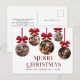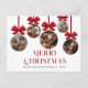 Celebrate the magic of the season with this unique Christmas card featuring five of your favorite family photos showcased in elegant hanging baubles. Decorated with festive red ribbons and sophisticated typography, this modern holiday card offers a whimsical and stylish way to share your 2026 memories.