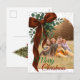 Cartão Postal De Festividades Elegant Red Bow with Greenery Photo Christmas
