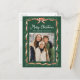 Envie desejos de feriado com este clássico cartão-postal de Natal com um arco de fita vermelho-aquarela e um quadro verde em um plano de fundo verde rico. A saudação "Feliz Natal" é exibida em um roteiro branco nítido acima do nome da sua família. No verso, adicione seu endereço de devolução, uma segunda foto e uma mensagem de feriado personalizada. Um design postal ousado, mas eterno, que lindamente destaca sua foto de família ao espalhar alegria festiva nesta temporada.