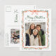 Compartilhe suas cartões de natal com este elegante cartão postal de Natal com um arco de fita vermelho-d-água e um quadro verde fluindo sobre um fundo branco. "Feliz Natal" aparece em um roteiro verde clássico acima do nome da sua família, com o verso oferecendo espaço para seu endereço de retorno, uma segunda foto e uma mensagem de feriado personalizada. Um design postal de eterno que facilita o envio de alegria festiva aos amigos e à família nesta época de Natal.