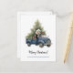 Cartão Postal De Festividades Engraçado Panda no Blue Retro Truck Xmas