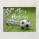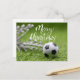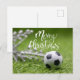 Cartão Postal De Festividades Esfera de futebol com decoração de Natal em verde