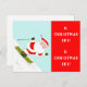 Cartões de natal de natal esquiadores com Papais noeis de cartoon descidas esqui de neve e citação engraçada para esquiador, compro de aluguel de equipamento de esqui e resorts de esqui.