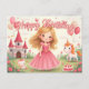 Cartão Postal De Festividades Fada Princesa Aniversário em Sonho Rosa