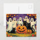 Cartão Postal De Festividades Fantasma de Halloween, Gatos e Pumpkins