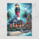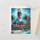 Cartão Postal De Festividades Farol Tropical de Natal Whimsical Vermelho Teal