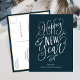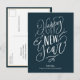 Cartão-postal de Feriado Moderno do Feliz ano novo Blue Script. Mande Cartões de natal para seus entes queridos com este Cartão Feriado Festivo e Moderno. Todos os textos estão pré-organizados para que você personalize fácil e rapidamente com seus próprios detalhes. Feliz Feriados!